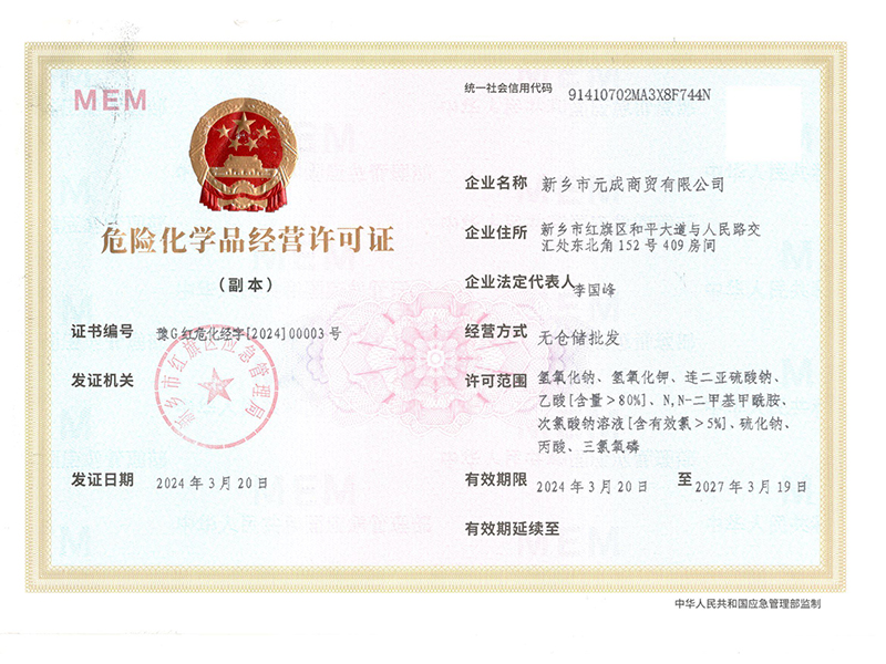 新鄉市元成商貿有限公司位于河南省新鄉市小店經濟開發區經六路,距離長濟高速兩公里,距京港澳高速八公里,緊鄰中歐班列貨運中轉站,交通位置便利,公司主要經營保險粉,無水亞硫酸鈉,純堿,碳酸氫鈉,液堿,片堿,DMF,冰醋酸等化工產品,廣泛應用于印染廠,涂料,化學工業,塑膠,電鍍,污水處理等行業,主導產品保險粉年銷售在3000噸以上,包括安徽中鹽紅四方,山東一森,煙臺古今,湖北宜化等品牌,公司秉承合作共贏,誠實守信原則,廣交天下朋友,竭誠為廣大客戶提供**產品和服務,歡迎您蒞臨指導垂詢洽談!...